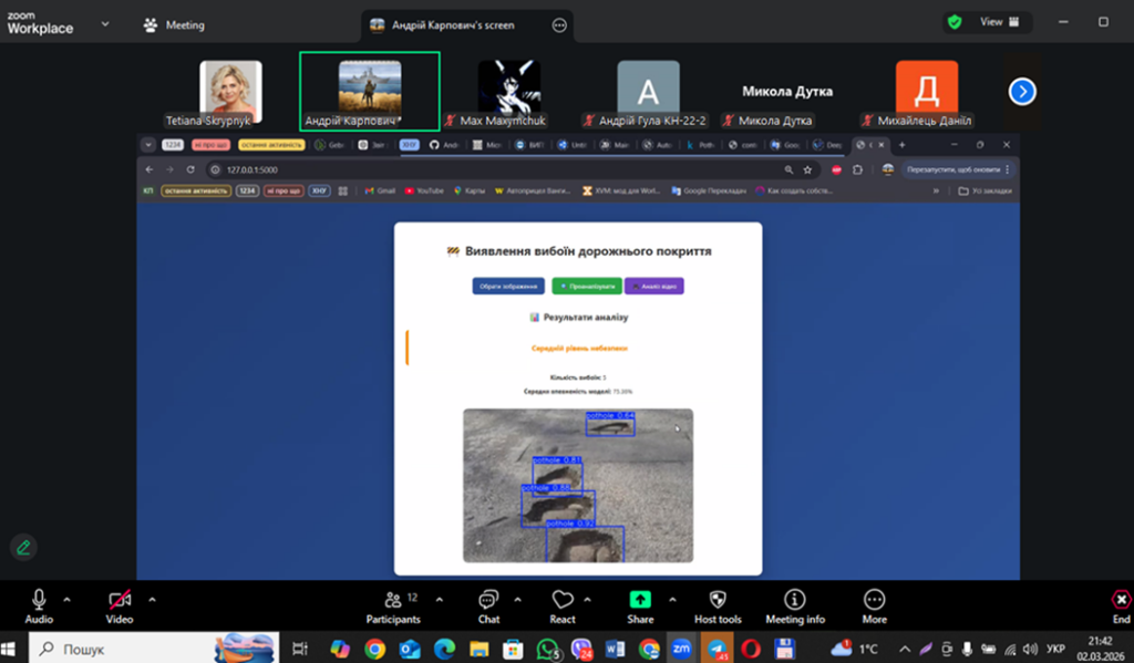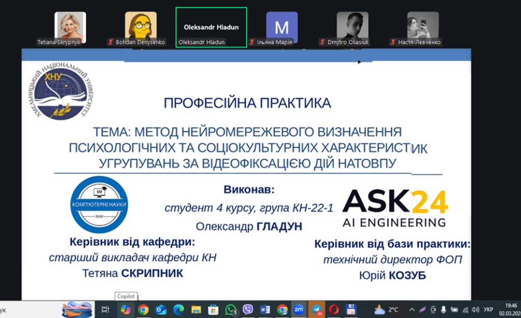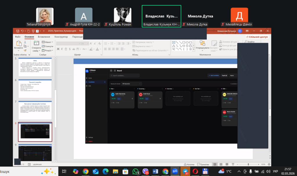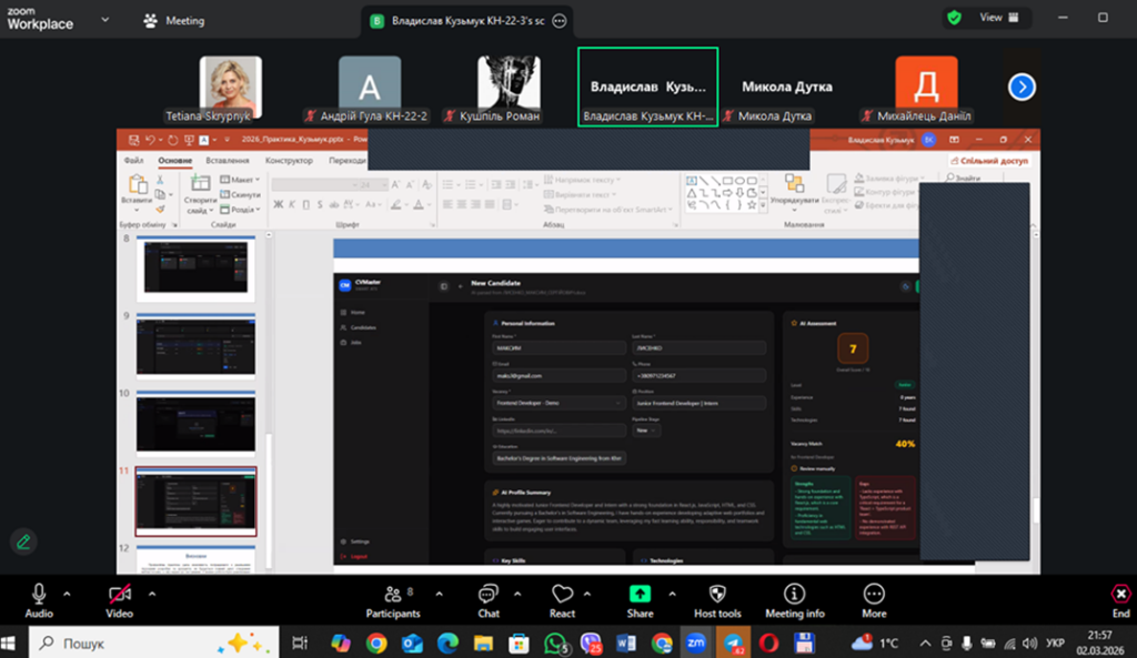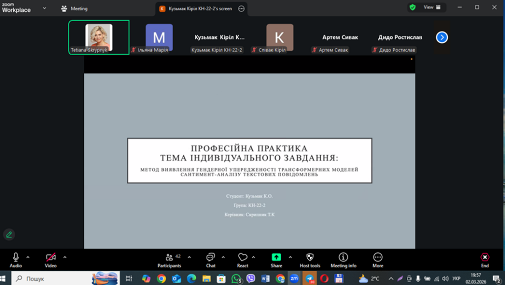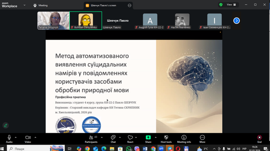 На кафедрі відбувся захист звітів з професійної практики здобувачів вищої освіти першого (бакалаврського) рівня. Професійна практика є важливим етапом підготовки майбутніх фахівців з комп’ютерних наук, оскільки сприяє набуттю необхідних фахових компетентностей.